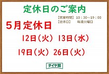 5月の定休日・営業日のお知らせ