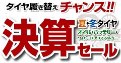 半期に一度の『決算SALE』 本日よりスタートしました!! タイヤ・ホイール・メンテナンス商品など多数取り揃えております!! お気軽にご来店下さい。