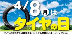 4月8日は『タイヤの日』 タイヤの点検などお気軽にお越し下さい。