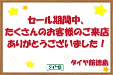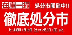 「徹底処分市」ラスト2日間となりました!! タイヤ・ホイール・メンテナンス商品までお買得商品が徹底処分!! お気軽にお問合せ下さい。