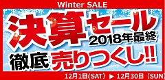 2018年最後のSALE 『決算SALE』開催のお知らせ SALE期間:12/1(土)~12/30(日) スタッドレスタイヤから夏タイヤまですべてが決算価格!! タイヤ・ホイール・メンテナンス品まで何でもお問合せ下さい。 皆様のお越しをお待ちしております。