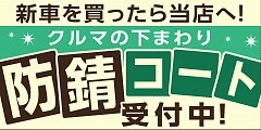 みなさま、大事な愛車、長く乗り続けたいですよね! そんな時におすすめなのが≪お車の防錆コーティング≫です。 普段お車の下回りを見る機会は少ないと思いますが、錆が進行してくと、 マフラーに穴が空いてしまったりお車に悪影響を及ぼす可能性があります。 徳島など海に近いところでは、潮風の塩...