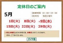 ★5月8日(火)・9日(水)は休業日です。