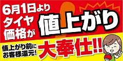 タイヤの値上げ目前!緊急セール開催決定~!!