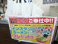 当店ホームページをいつもご覧いただきありがとうございます。 ただいま当店ではTVCMでおなじみの『集中得市』を好評開催中!! 期間中、タイヤ4本お買い上げいただいたお客様に インスタントラーメン(袋麺5袋)プレゼント(^^) 開催期間は4/2(日)までとなっております!! お手頃な商品か...