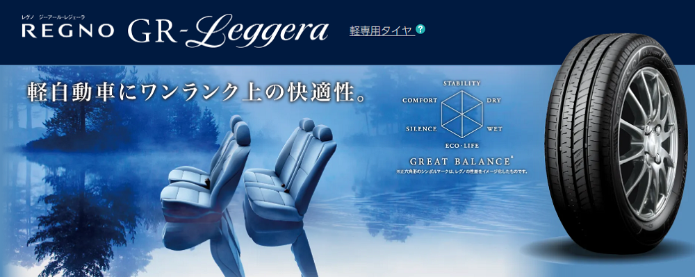 ★軽自動車にワンランク上の快適性★ ※軽専用 “REGNO”の名を持つに相応しい性能を持つ軽自動車専用GR-Leggera。 ワンランク上の静粛性、乗り心地であなたの車はタイヤで変わる。 ①軽自動車での静かな車内空間を演出 ②快適な乗り心地を実現 ③より安全に長く使えるロングライフタイヤ 詳しくはHPをご覧...