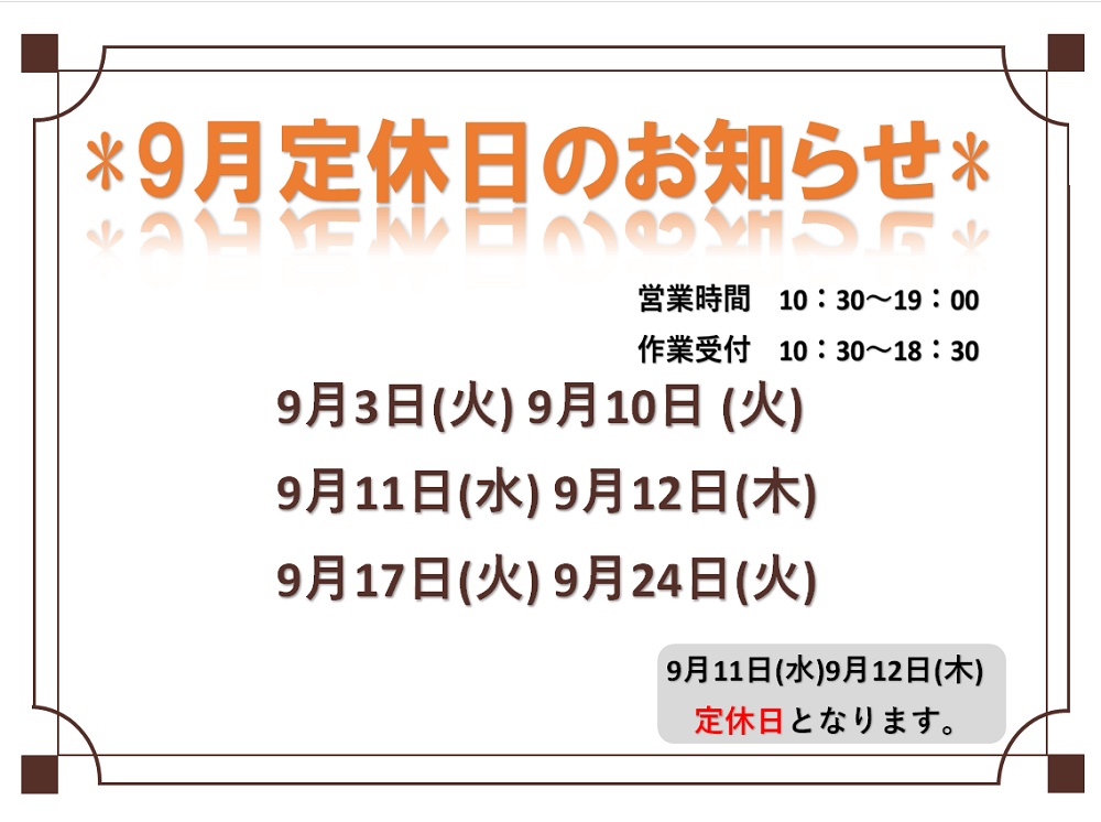 9月定休日のお知らせ