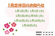 1月定休日のお知らせ