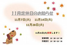 11月定休日のお知らせ
