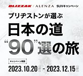 BLIZZAK/ALENZA SUVキャンペーン ブリヂストンが選ぶ日本の道90選の旅‼ ブリヂストンが選ぶ日本の道90選の中から BLIZZAK/ALENZAを装着したSUVで走っていただいきたいルートを厳選しました★ 最高のドライビングに良質な宿、 そしてアクティビティまで楽しんでいただける 特別なツアーにご招待(*'ω'...