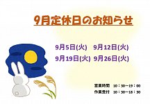 9月定休日のお知らせ