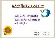 8月定休日のお知らせ