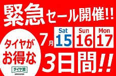 本日からの3連休はタイヤ館徳島へ☆彡 7月15日・16日・17日の3日間 は タイヤがとってもお得な当店にご来店ください☆彡 本日から 【タイヤセール】を開催します(^^)/ タイヤの事は、タイヤ専門店の当店におまかせ♪ 軽自動車からミニバン・SUVのお車など ブリヂストンならではの 【専用設計】の商品か...
