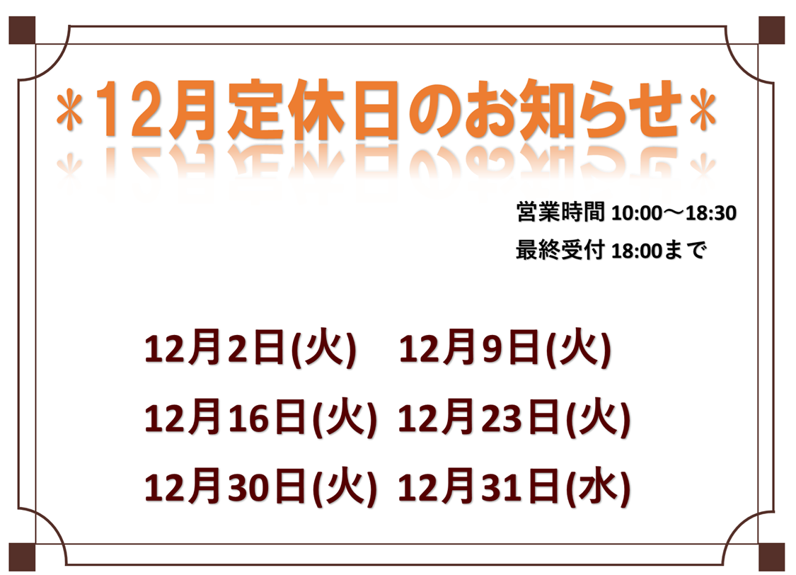 いつもタイヤ館徳島店をご利用いただき 本当に有難うございます。 誠に勝手ながら 12月の定休日は毎週火曜日とさせていただきます。 ※12月15日(月)は棚卸の為17:00閉店です。(16:30分で受付終了) 定休日でも ご自宅からタイヤをご購入頂けます! 詳しくは↓↓↓をチェック(^^)v 自宅でもタイヤのご購入...