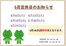 6月14日(水)は臨時休業となっております。 お間違えの無いようお願い致します!!!