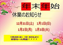 1月4日(水曜日)から新春セールを開催致します! お得な期間となっておりますのでこの機会に是非ご来店下さい!