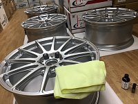 先日アルミホイールに ガラスコーティングを施工致しました☆ 施工の様子です↓↓ お客様にご注文頂いたホイールが入荷したので、 傷や仕上がり確認をした後 専用ガラスコーティング剤で施工していきます(^^♪ お車のボディコーティングは おおよそ5.5H~6Hの硬度なのに対し 当店施工のコーティング剤は...
