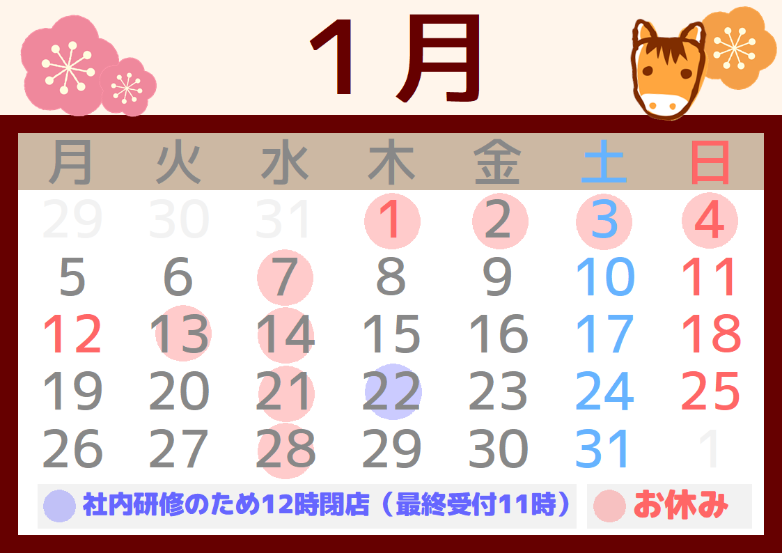 ・5日(月)以降は毎週水曜日と13日(火)がお休みとなります。