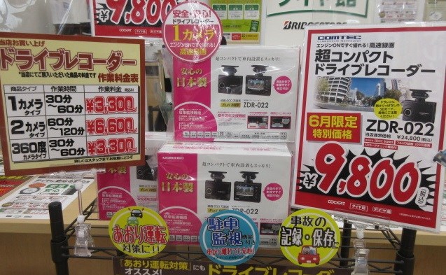 取り付け工賃は、1カメラタイプで¥3,300~、2カメラタイプで¥6,600~になります。