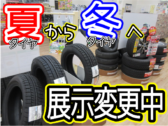 なので、店内の展示を夏タイヤ⇒冬タイヤにチェンジ中(*´ω`*)
