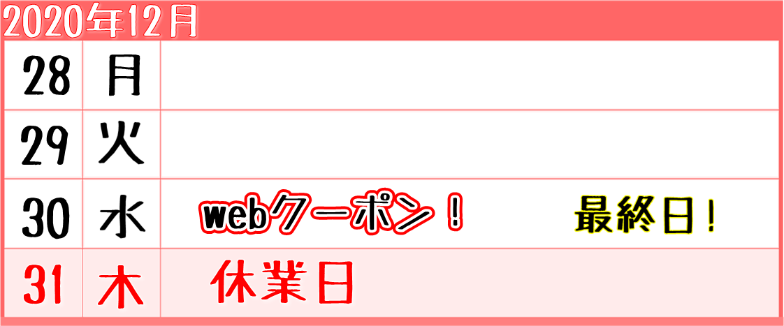 ★12月31日(木)~1月4日(月)までは年末年始休業とさせていただきます。
