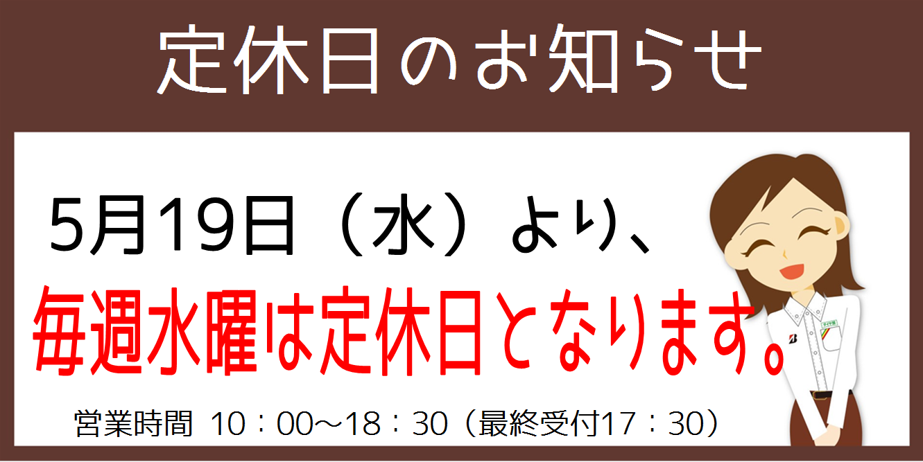 明日5月19日(水)より、定休日を復活させていただくことになりました!