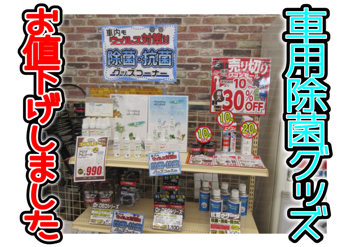 ドクターデオシリーズや、エアコンの除菌消臭スプレーなど、お車で使える除菌グッズをお値下げしました!