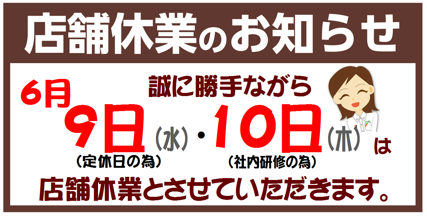 社内研修の為、10日(木)はお休みとなります!