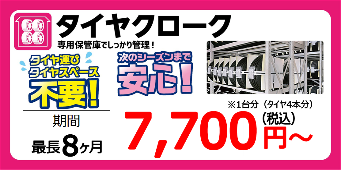 ★次のシーズンまで(最長8ヶ月)タイヤ4本をお預かりいたします。