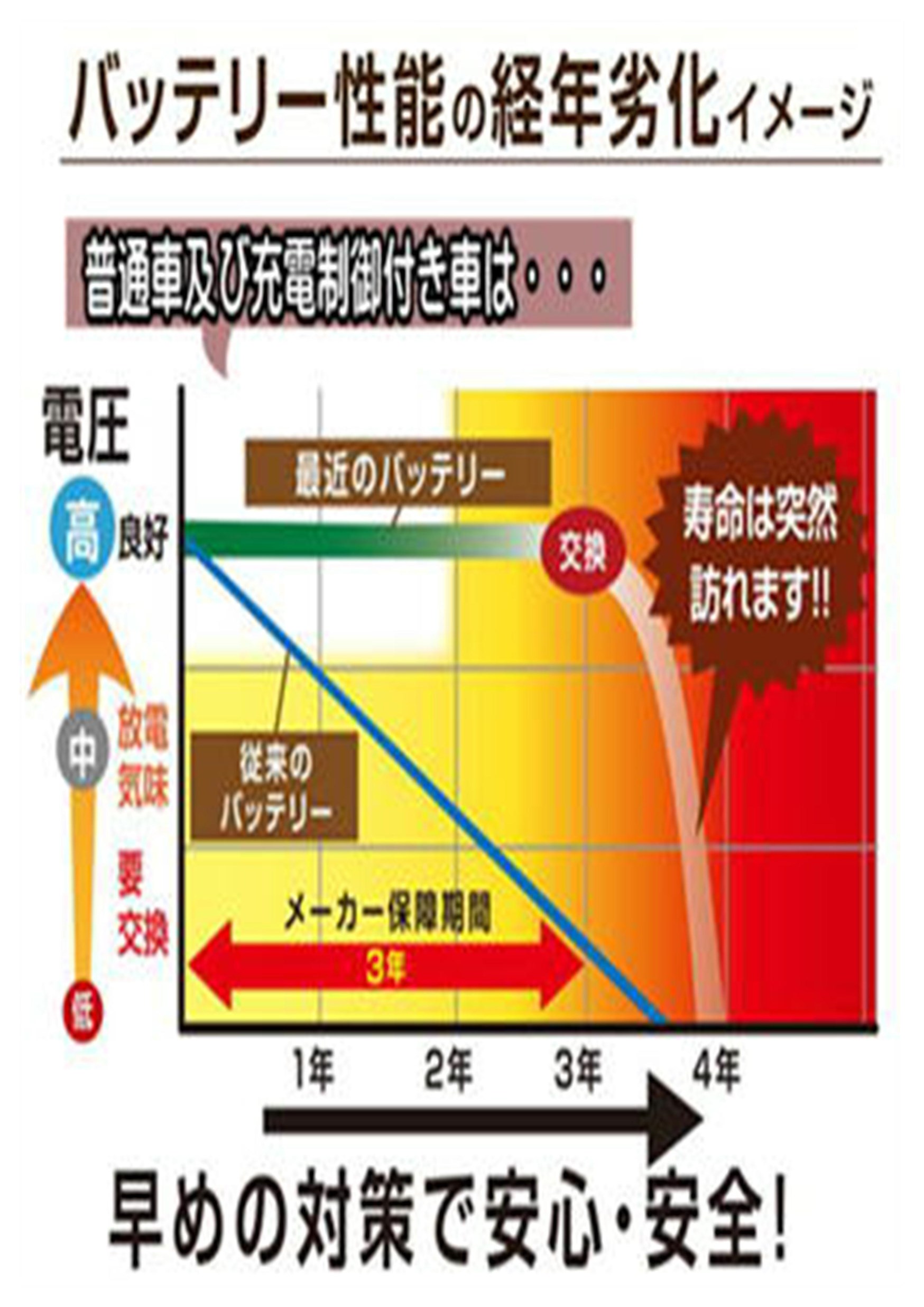 バッテリーの性能低下のイメージをグラフにしてみました。