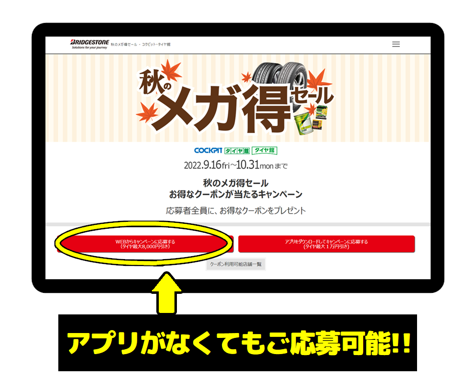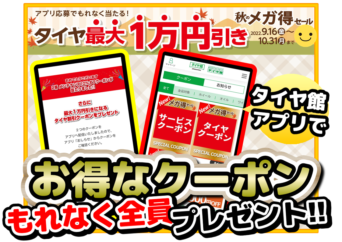 タイヤ最大1万円引きクーポン!