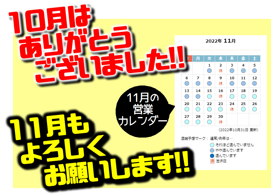 なので、《 2日・9日・16日・24日・30日 》がお休みになります。