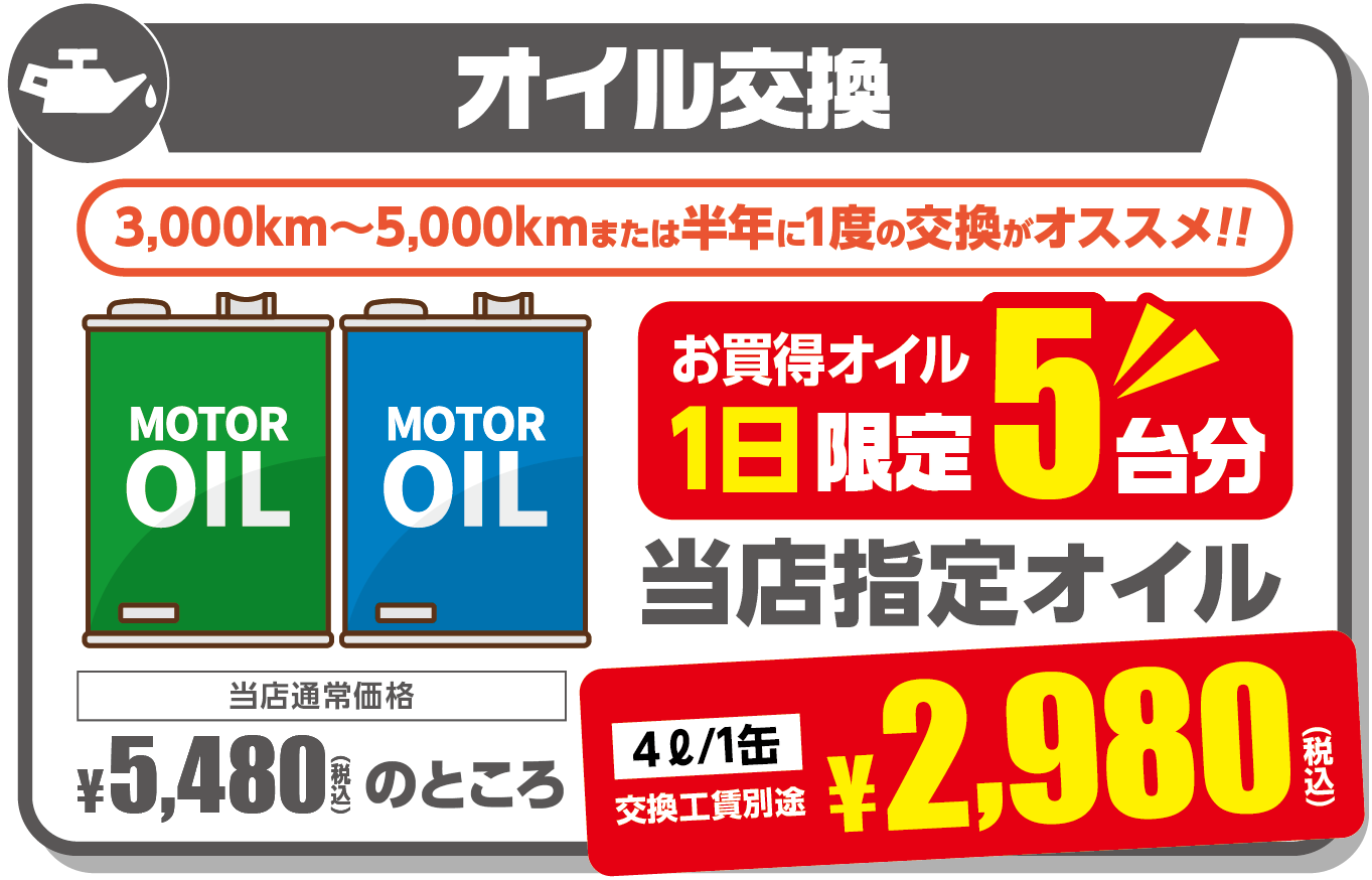 バッテリーやエンジンオイル、エアコンフィルターなどがお得に交換できるのも明日まで!