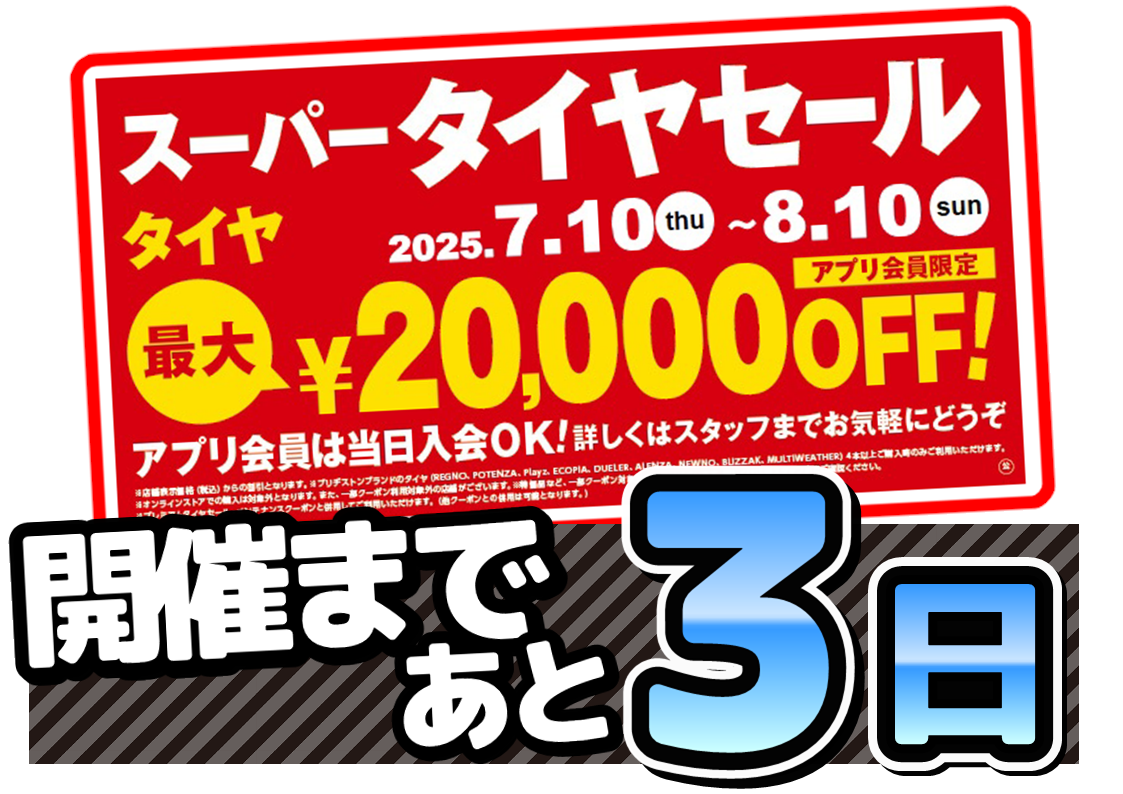 【 スーパータイヤセール 】スタートまでいよいよあと3日となりました!