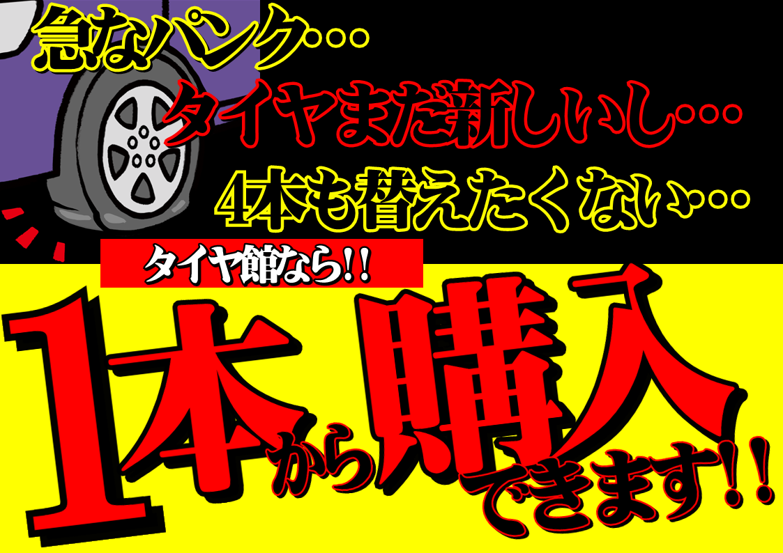 タイヤ館なら、1本から購入できます!!!