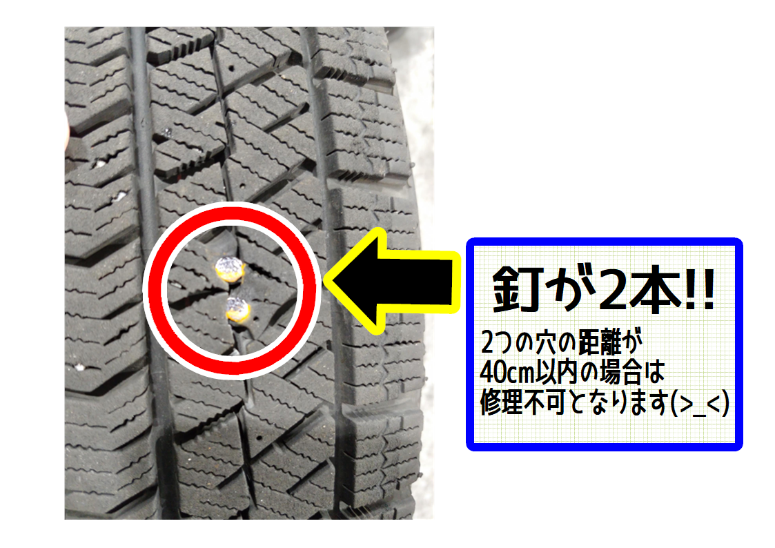穴が2つまでなら修理は可能なのですが、その距離が40cm以内だと修理不可となります。