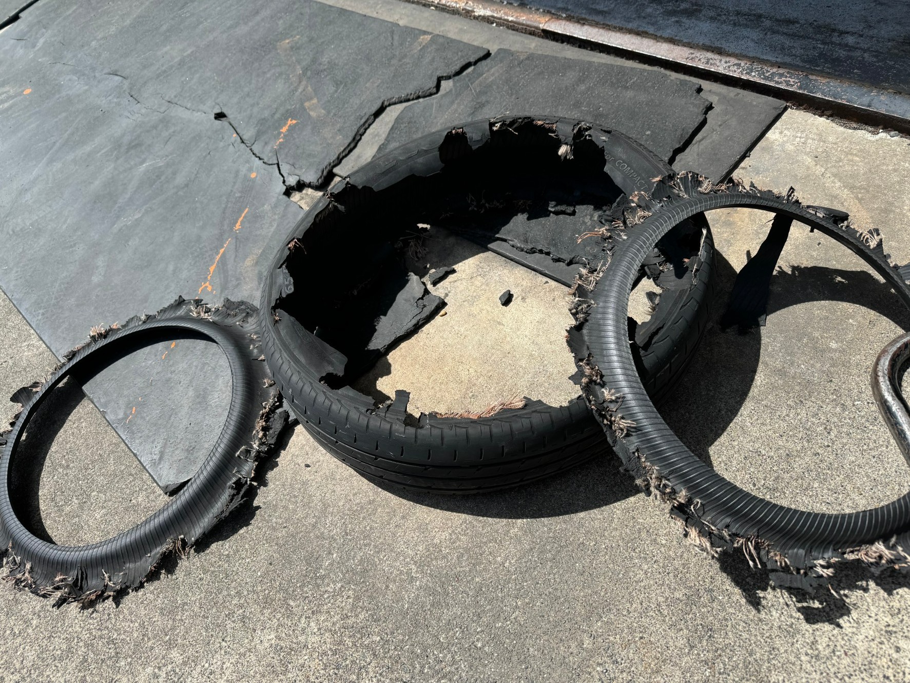 高速道路で急にガタガタなりだし、気付いた時にはこのような状態になってしまったそうです(>_<)