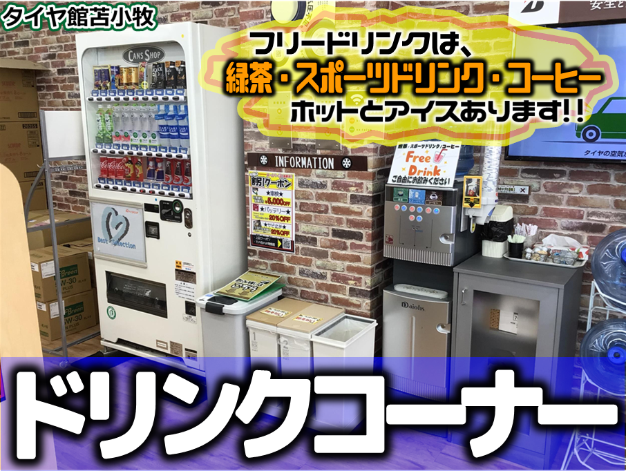 タイヤ館苫小牧も、涼しい店内と冷たいドリンクで、みなさまのご来店をお待ちしております★