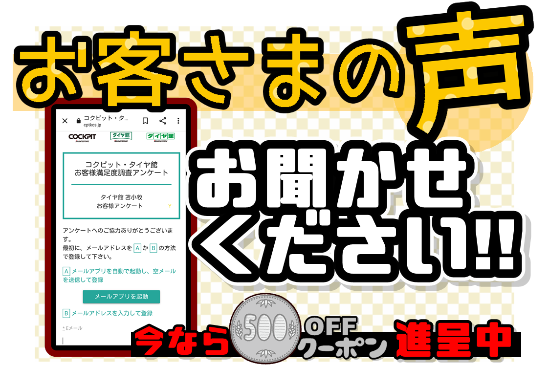タイヤ館では、ご利用いただいたお客様からのご意見・ご感想のアンケートを行っております。