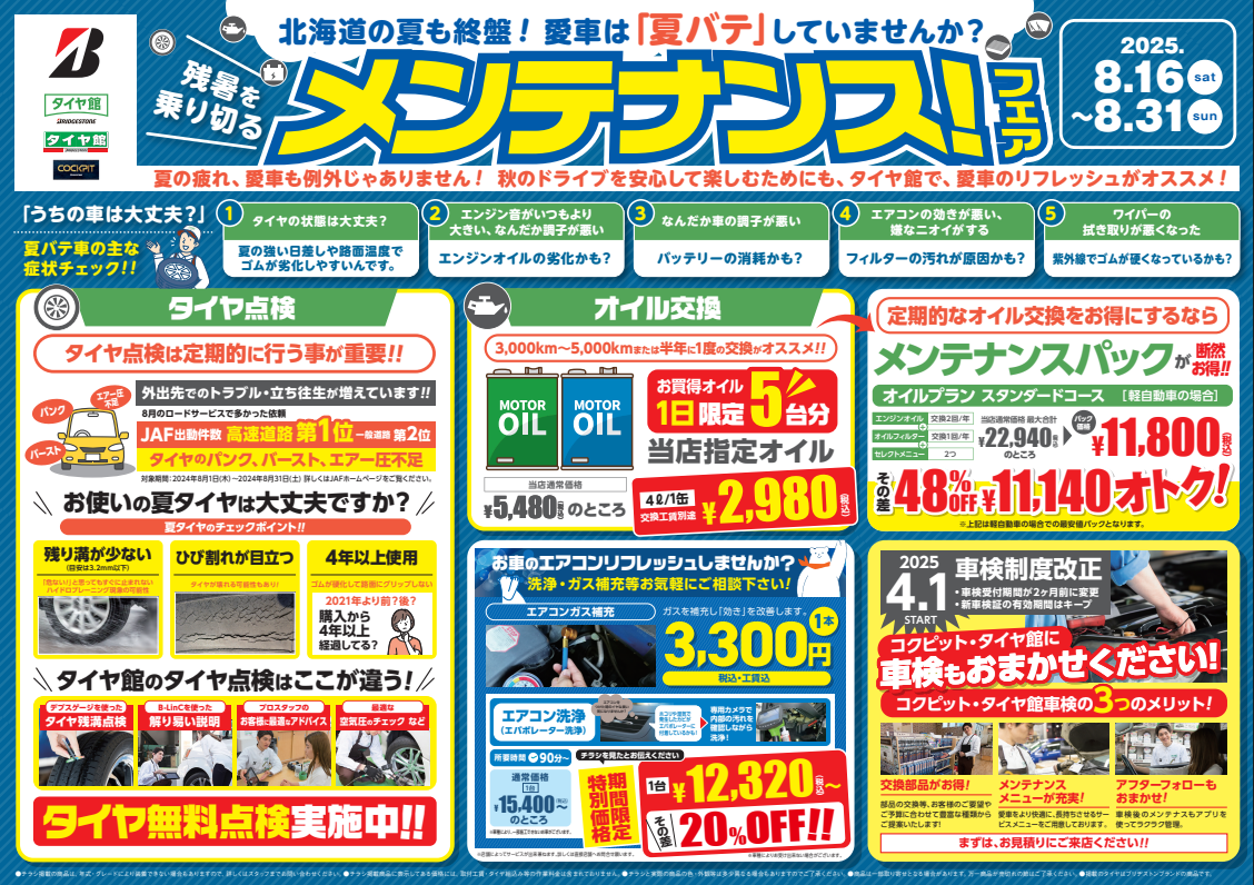 メンテナンスフェア 8月31日(日)まで!