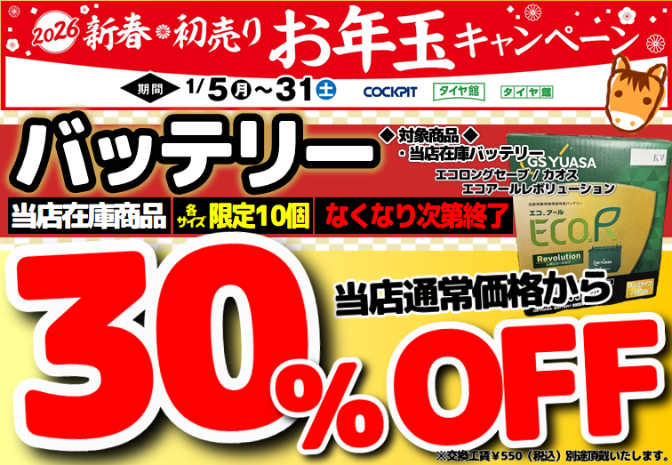 「最近、エンジンの始動が重い気がする…」 少しでも不安を感じたら、動かなくなる前にぜひ一度タイヤ館苫小牧へお立ち寄りください!