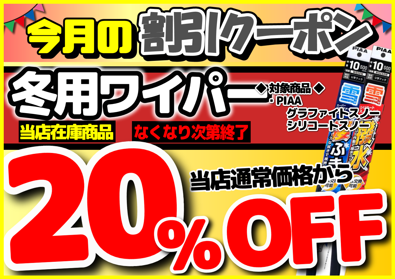 早い者勝ち!PIAAの冬用ワイパーが20%OFF♪ 在庫処分セール開催中!