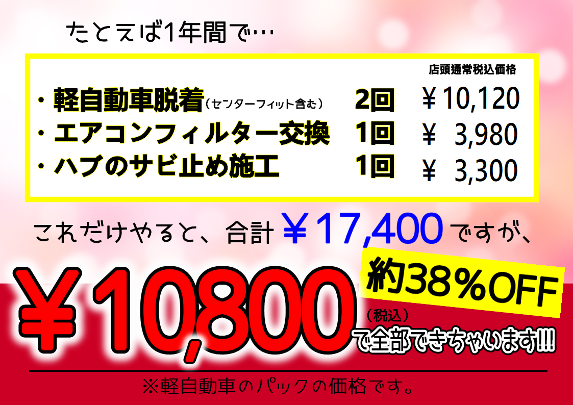 そんなお客様には、お得な【 メンテナンスパック 】をご用意しております!!!