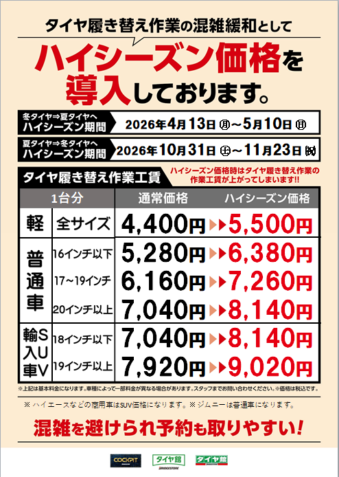 「どうしてもこの期間中にタイヤ交換がしたい…」
