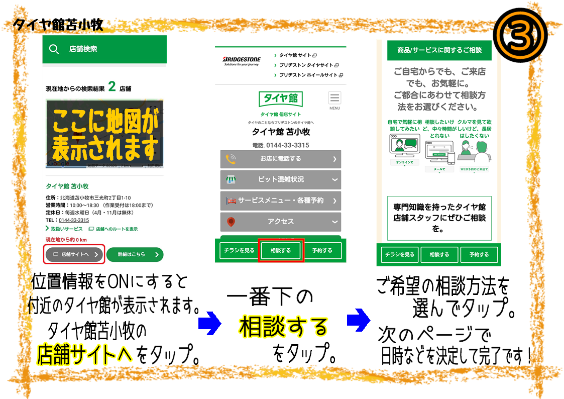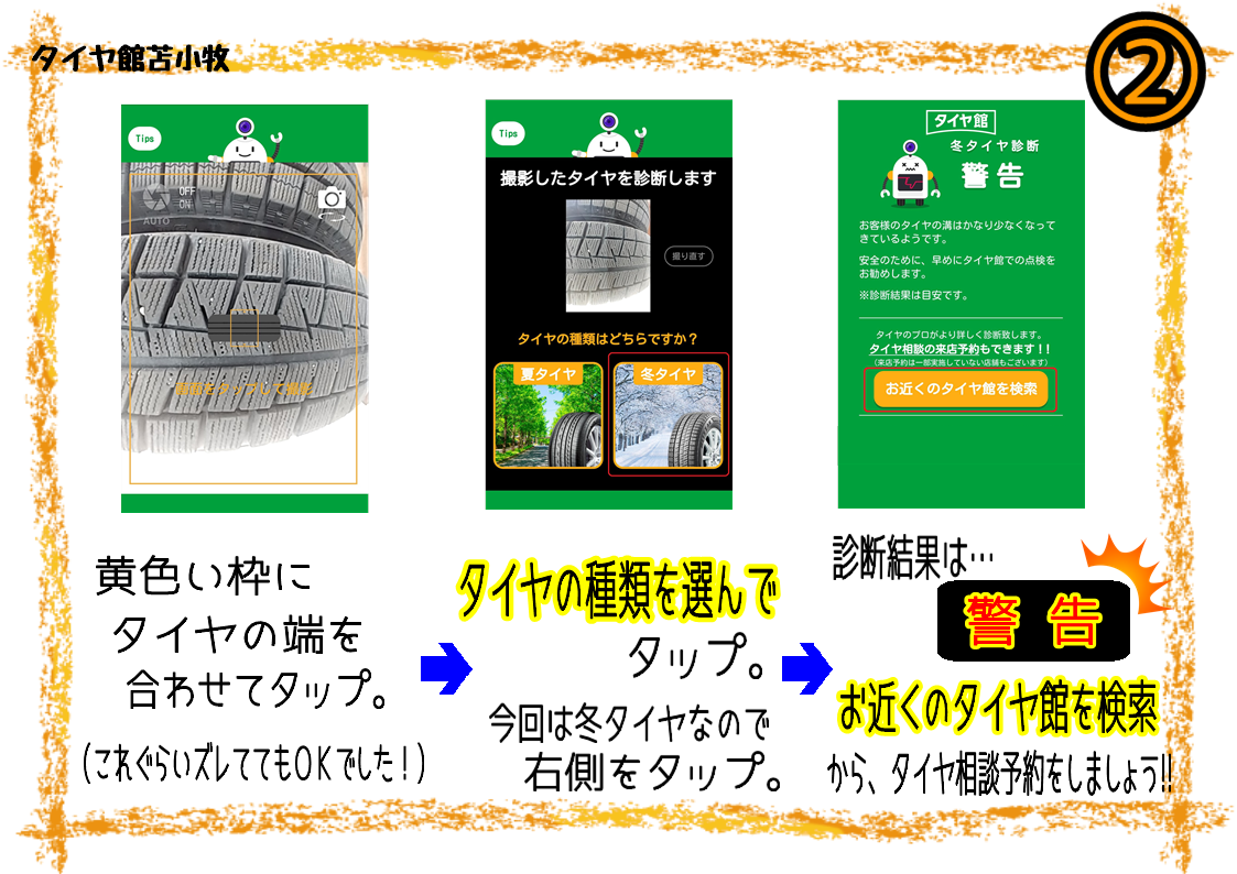 タイヤ買い替えの判断はAIにお任せ★そのまま予約もできちゃいます(*'ω'*)