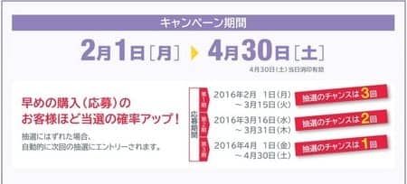 応募期間は4月30日(土)までなのですが、応募するのが早ければ早いほど当選確率がUP↑↑