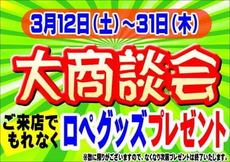 大商談会、本日最終日です!! ポスト 2016年3月31日 もう明日から4月ですね(>_<)早すぎませんか(>_<)3月最終日ということは……大商談会も本日が最終日!!!「チラシ見たよ」で、オイル交換と下回りのサビ止めコーティングがとってもお得にできちゃううのも今日まで!!下のリンクにチラシ貼ってあるので、ぜひご覧になって、本日19時までにご来店ください(*´ω`) 担当:あまの