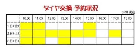 ピットが空き次第、順番に作業することになるので、どのくらいの待ち時間になるかはその時の状況でだいぶ変わってしまいます。