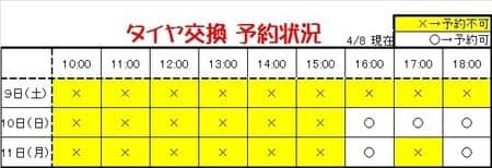 集中得市!明日から! ポスト 2016年4月8日 明日はタイヤ交換の予約が全て埋まってしまいました(●´Д`●)ご予約がなくても作業は承っておりますが、セール中の週末ということもあり、大変混雑が予想されます。お時間に余裕をもってご来店頂けたらと思います。タイヤの購入や見積もりなどはいつでも大歓迎です\(^o^)/スタッフ全員バタバタしてるかと思いますが、遠慮なくお声掛けください(^_^) 担当:あまの