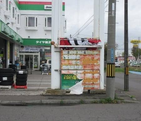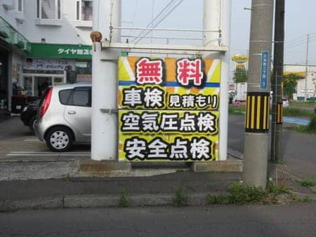 タイヤ館の看板の下に貼っていた大きなPOPが、気付けばこんなにボロボロになっていました((+_+))